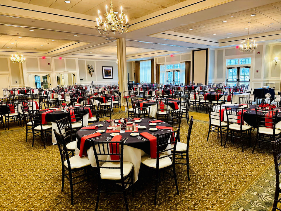 Our ballroom can accommodate up to 300 people, and has a private outdoor patio overlooking the breathtaking golf course. For smaller events, our formal dining room can seat up to 40. We have four separate dining venues that can be configured to the perfect size for your wedding, event, or meeting.